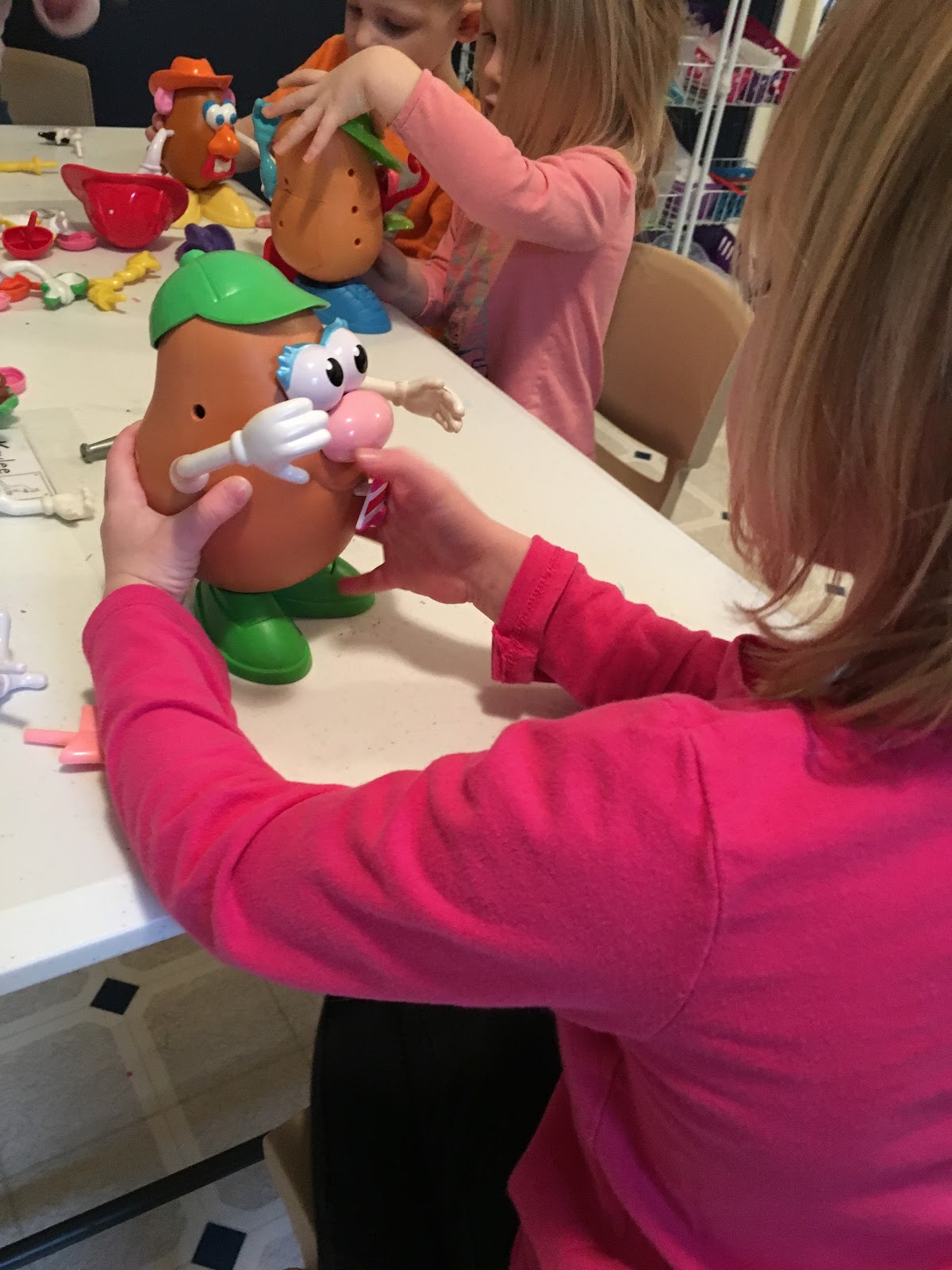 Did you know that they grow potatoes in Ireland? In preparation for St. Patrick's Day, we have talked about different facts about Ireland: the colors and symbolism of the Irish flag, leprechaun lore, where Ireland is on the map... and today we made Potato Heads.